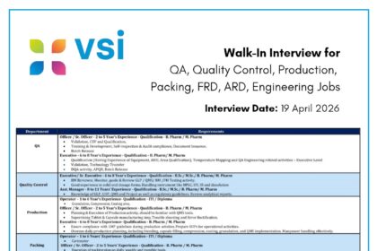 Pharma Jobs Update: Swiss Parenterals Ltd. is inviting applications for Quality Control (HPLC) and QA Stability (Injectables) positions at its…