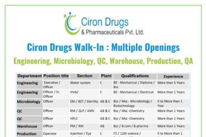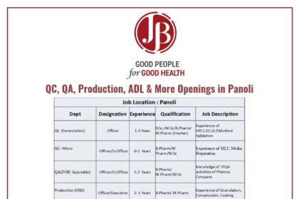 Unique Pharmaceutical Laboratories, a division of JB Pharma, has announced urgent openings for the position of ADL Officer at their…