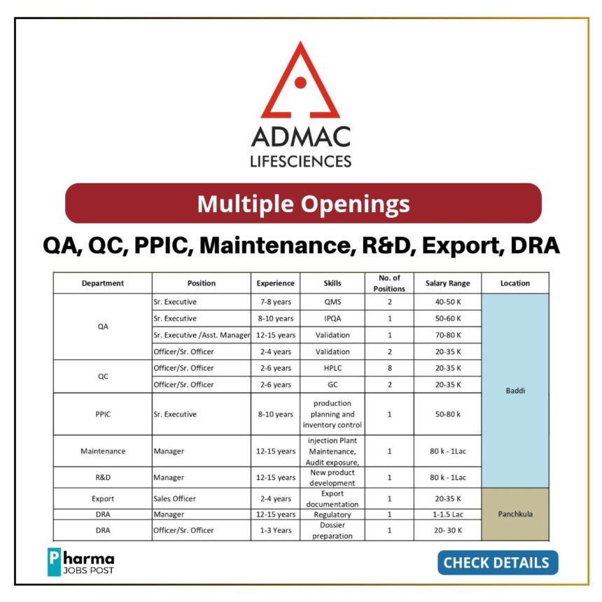 Hiring Alert: Admac Lifesciences Limited Recruiting for Multiple Positions | Baddi & Panchkula Admac Lifesciences Limited is inviting applications from…