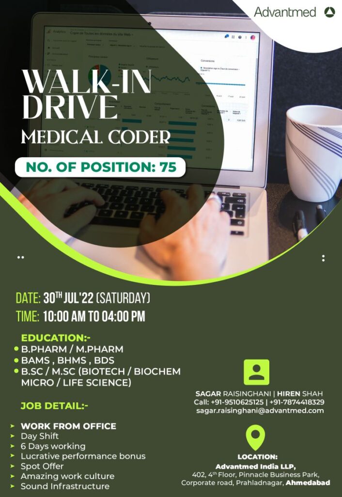 Advantmed India Walk-In Drive for Medical Coder on 30th Jul’22 – 75 Position