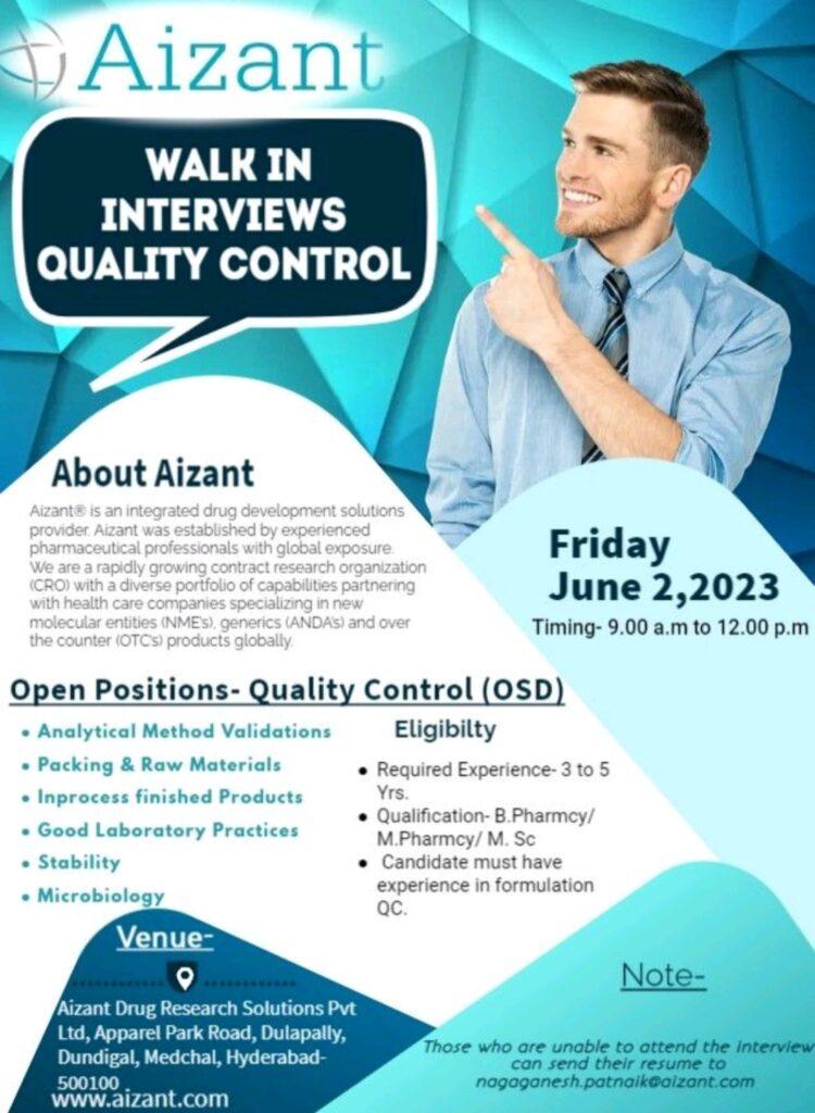 Those who are unable to attend the interview can send their resume to nagaganesh.patnaik@aizant.com