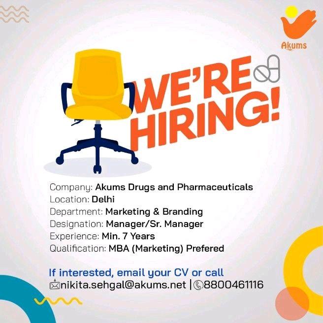 Akums Drugs and Pharmaceuticals, hiring Manager/ Sr. Manager- Marketing & Branding