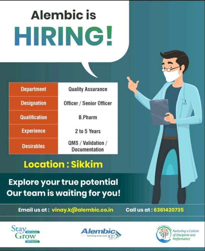 Interested candidates can send their CV to email: vinay.k@alembic.co.in