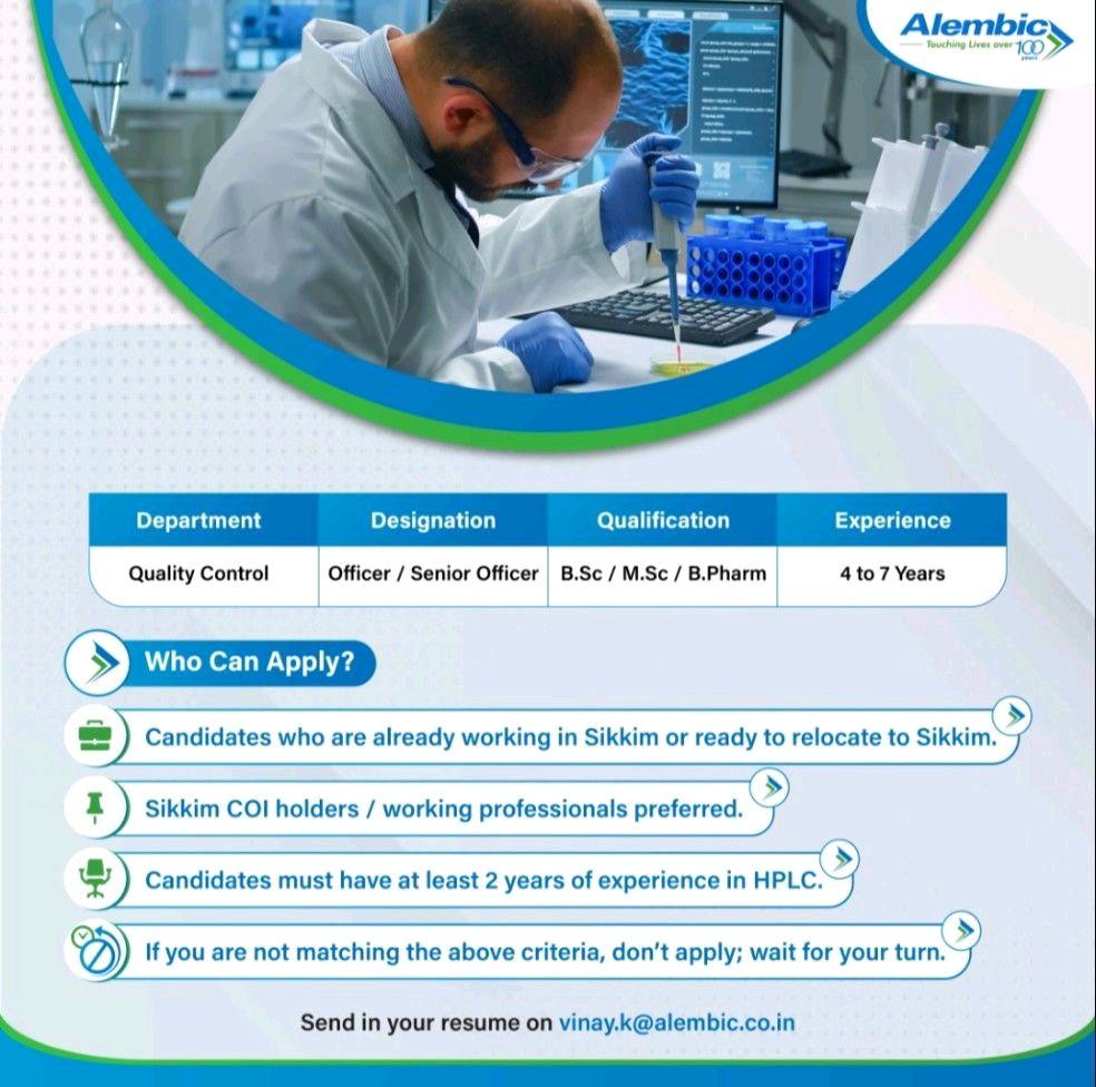 Alembic Pharmaceutical hiring for QC Quality Control department