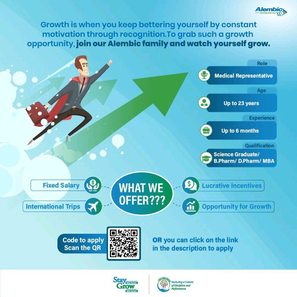 Alembic Pharmaceuticals hiring Freshers & experience B.Sc (any Stream)/ D pharmacy/B pharmacy and MBA candidates for Medical Representative