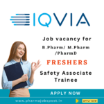 Candidate must have education in M.Pharm/B.Pharm/M.Sc (Organic Chemistry or Microbiology) with atleast 2 to 5 years of suitable experience.