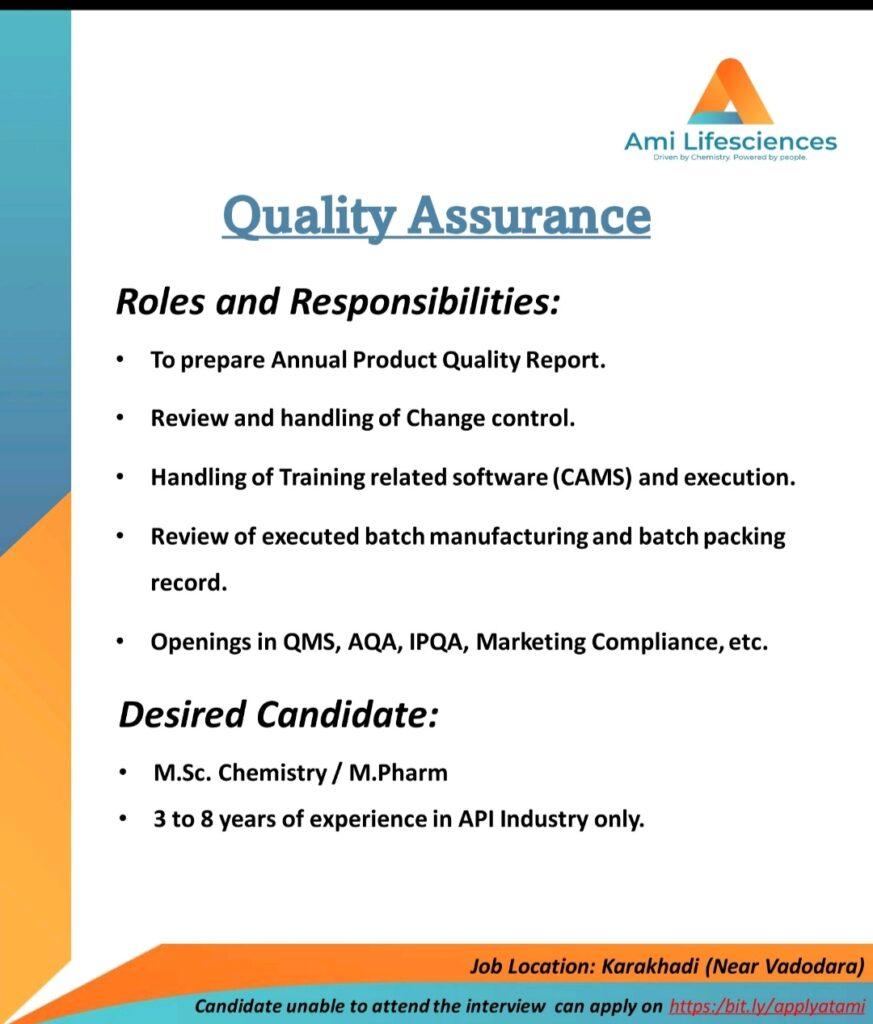 Openings in QMS, AQA, IPQA, Marketing Compliance, etc.
