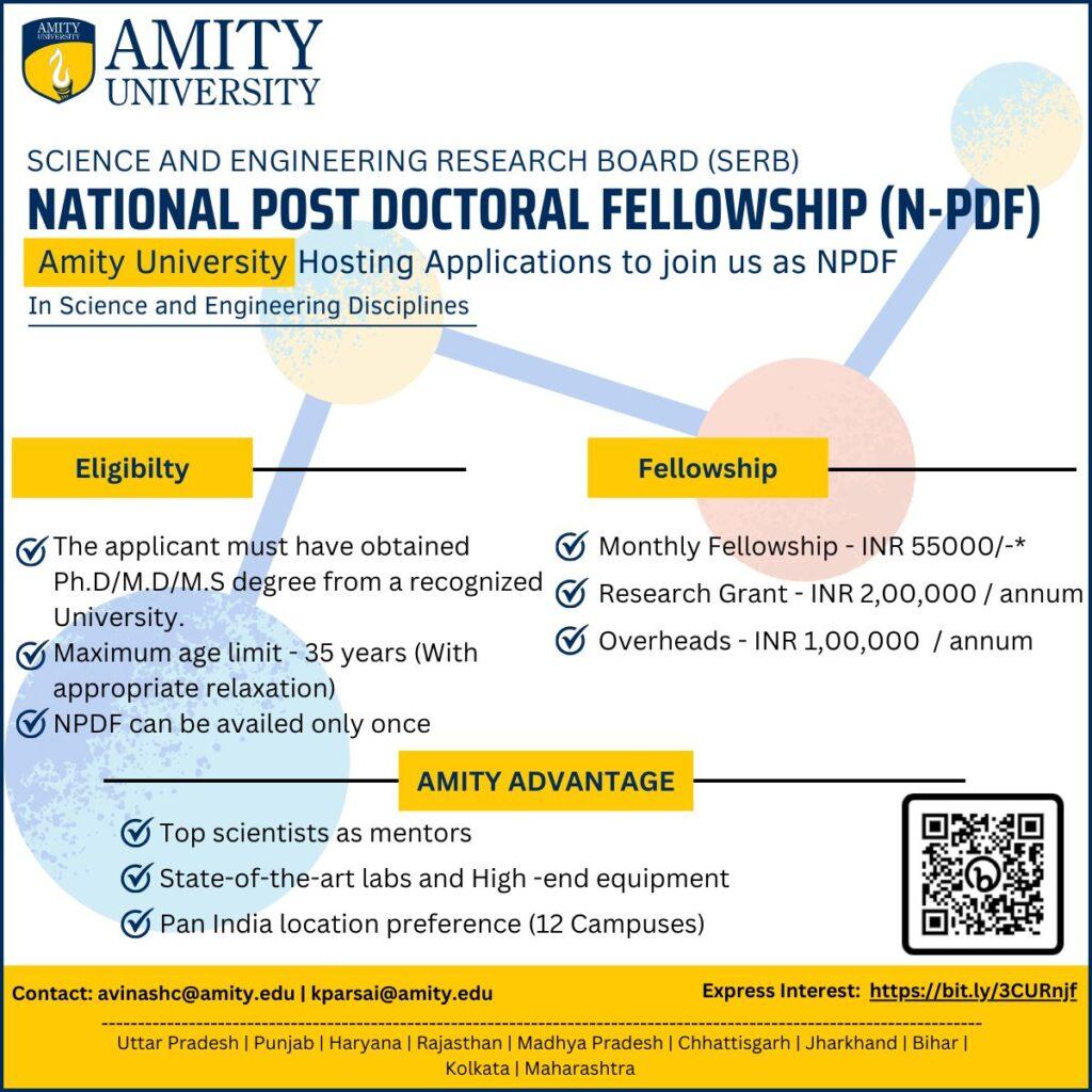 Amity University Hosting Applications to join us as NPDF In Science and Engineering Disciplines