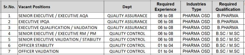 Required Qualification : B.SC/ M.SC/ B.PHARMA