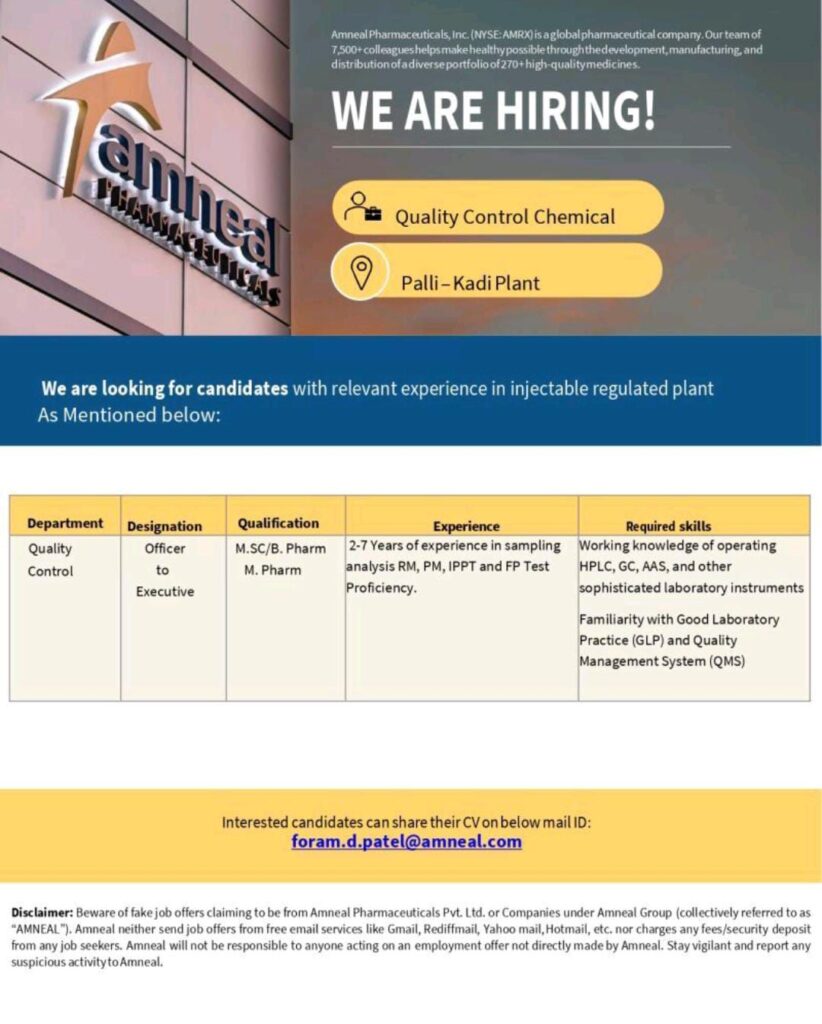 Amneal Pharmaceuticals is actively hiring for Quality Control (QC) positions across various locations, including opportunities in India.