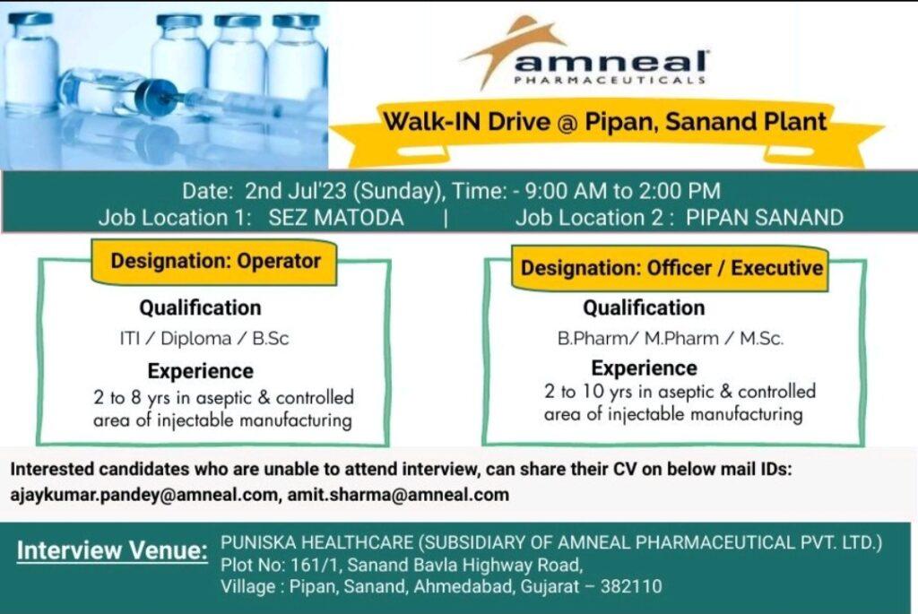 Interested candidates who are unable to attend interview, can share their CV on below mail IDs: ajaykumar.pandey@amneal.com, amit.sharma@amneal.com
