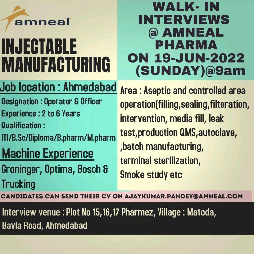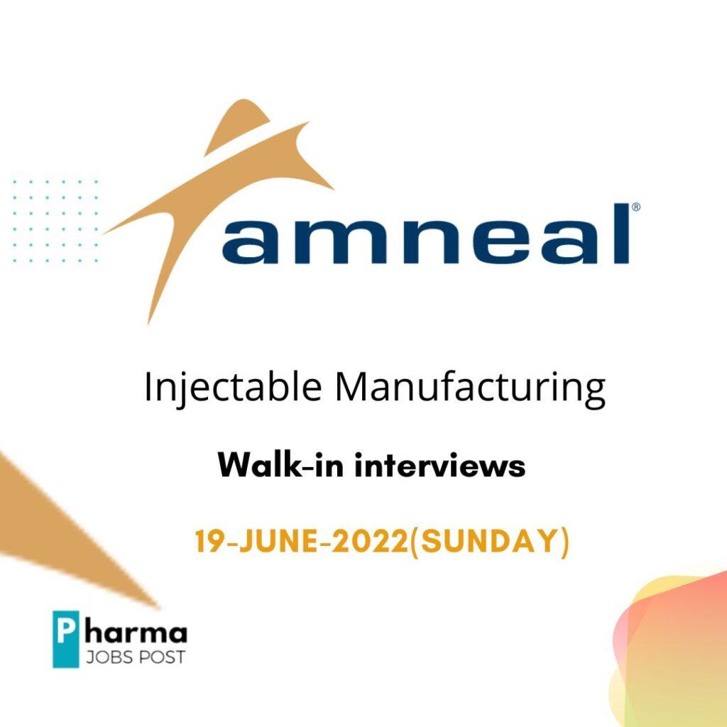 Amneal Walk-in interviews for Injectable Manufacturing on 19-June-2022(Sunday)