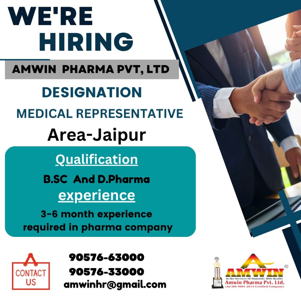 Amwin Pharma Pvt. Ltd. hiring Medical Representative for Jaipur location