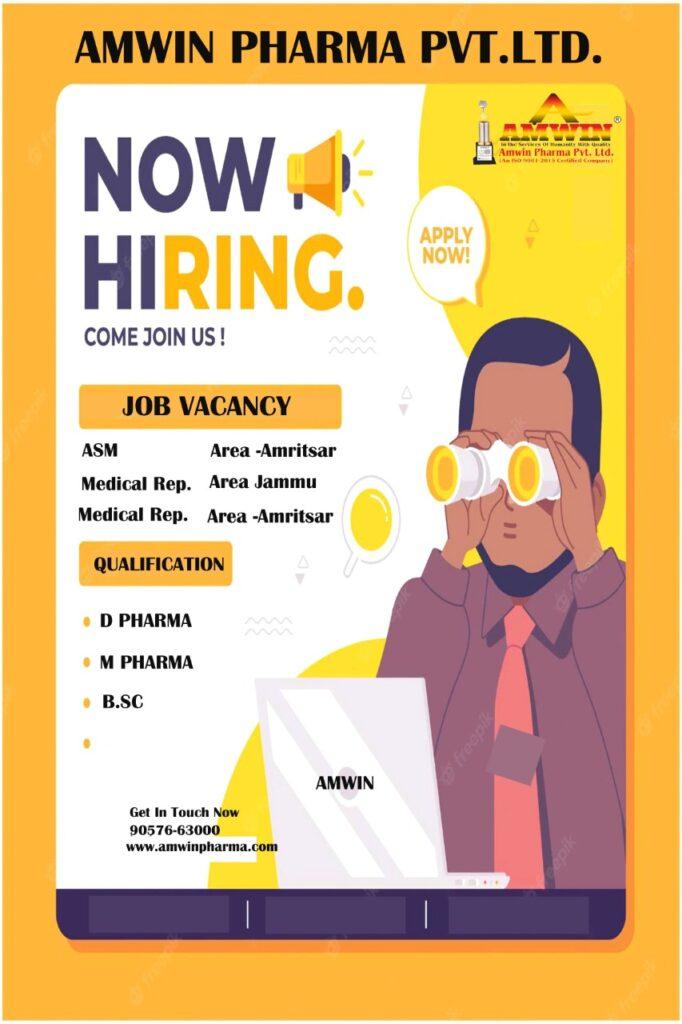 AMWIN PHARMA PVT.LTD. vacancy for Medical Representative for Ludhiana , Amritsar, Muktsar, Patiala, Bhtinda, Udaipur, Jalore(Rajasthan),J&k location (D.Pharma/ M. Pharma/ B.Sc/M.Sc Fresher : – CTC 3L + INCENTIVE)