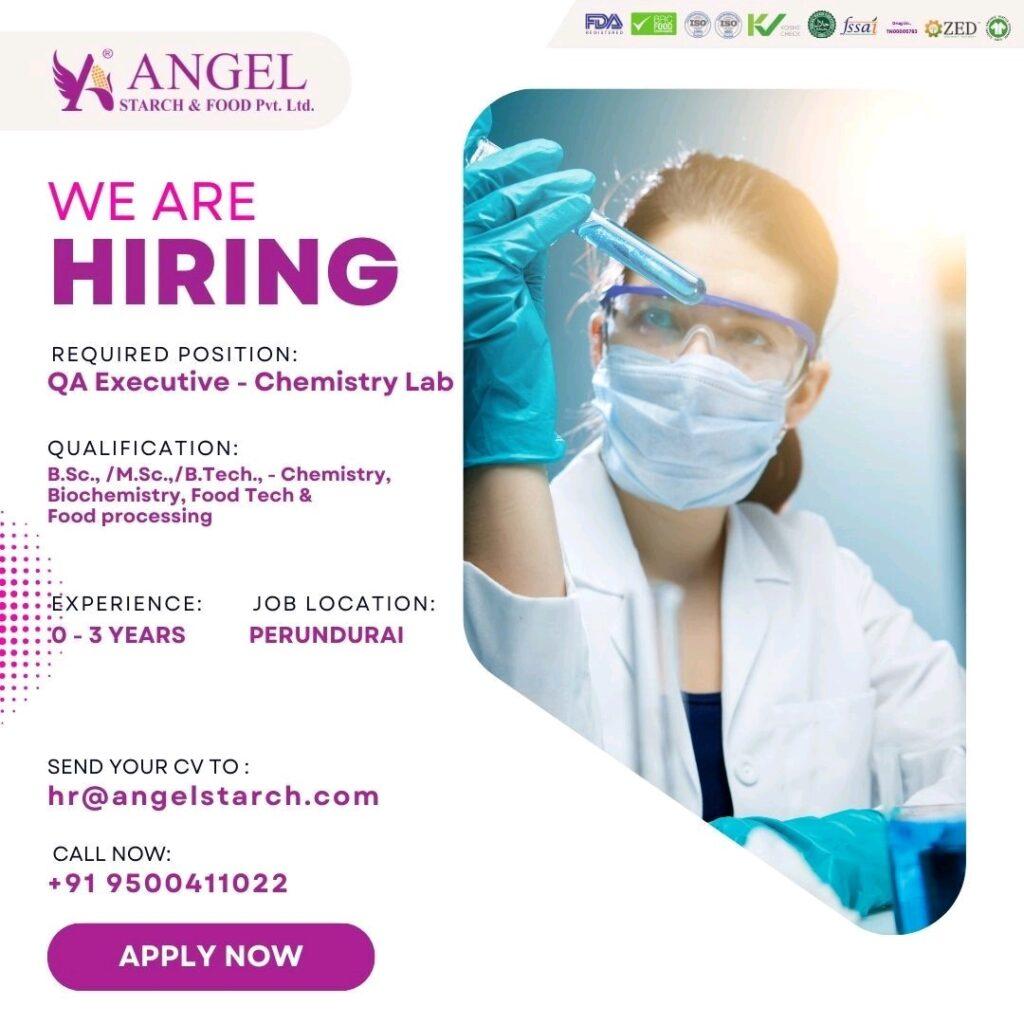 Angel Starch and Food Pvt Ltd- Job opening for QC Executive – Chemistry Lab (Freshers & Experience) Apply now