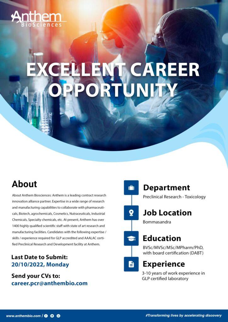 Excellent career opportunity for our Preclinical Research- Toxicology Department