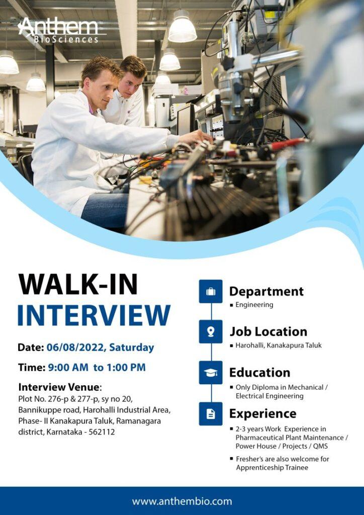 Anthem Biosciences Private Limited Walk in Drive for Engineering Department on 06/08/2022