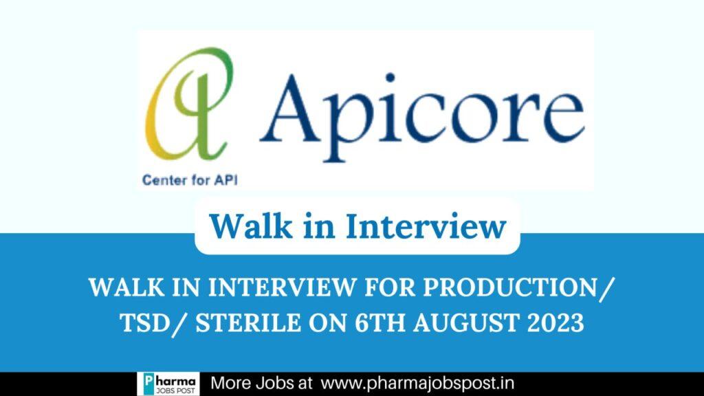 Apicore Pharmaceuticals- Walk In Interview for Production/ TSD/ Sterile on 6th August 2023