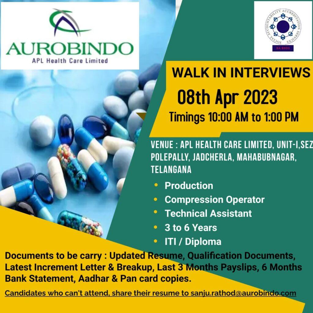 APL Health Care Limited- Production Compression Operator, Technical Assistant on 08th Apr 2023