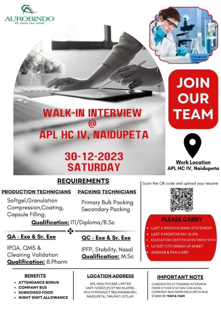 WALK-IN INTERVIEW @ APL HC IV, NAIDUPETA