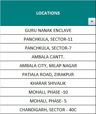 Across Chandigarh, Kharar, Mohali, Zirakpur, Panchkula, Derabassi region