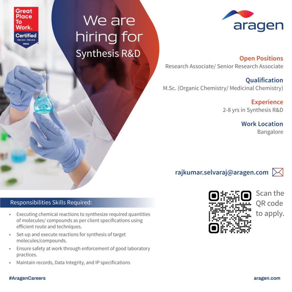 Aragen Life Sciences is Hiring for Research Associate/ Senior Research Associate- Synthesis R&D department