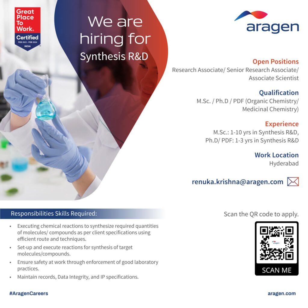 Aragen Life Sciences is Hiring Research Associate/ Senior Research Associate/ Associate Scientist – Synthesis R&D department