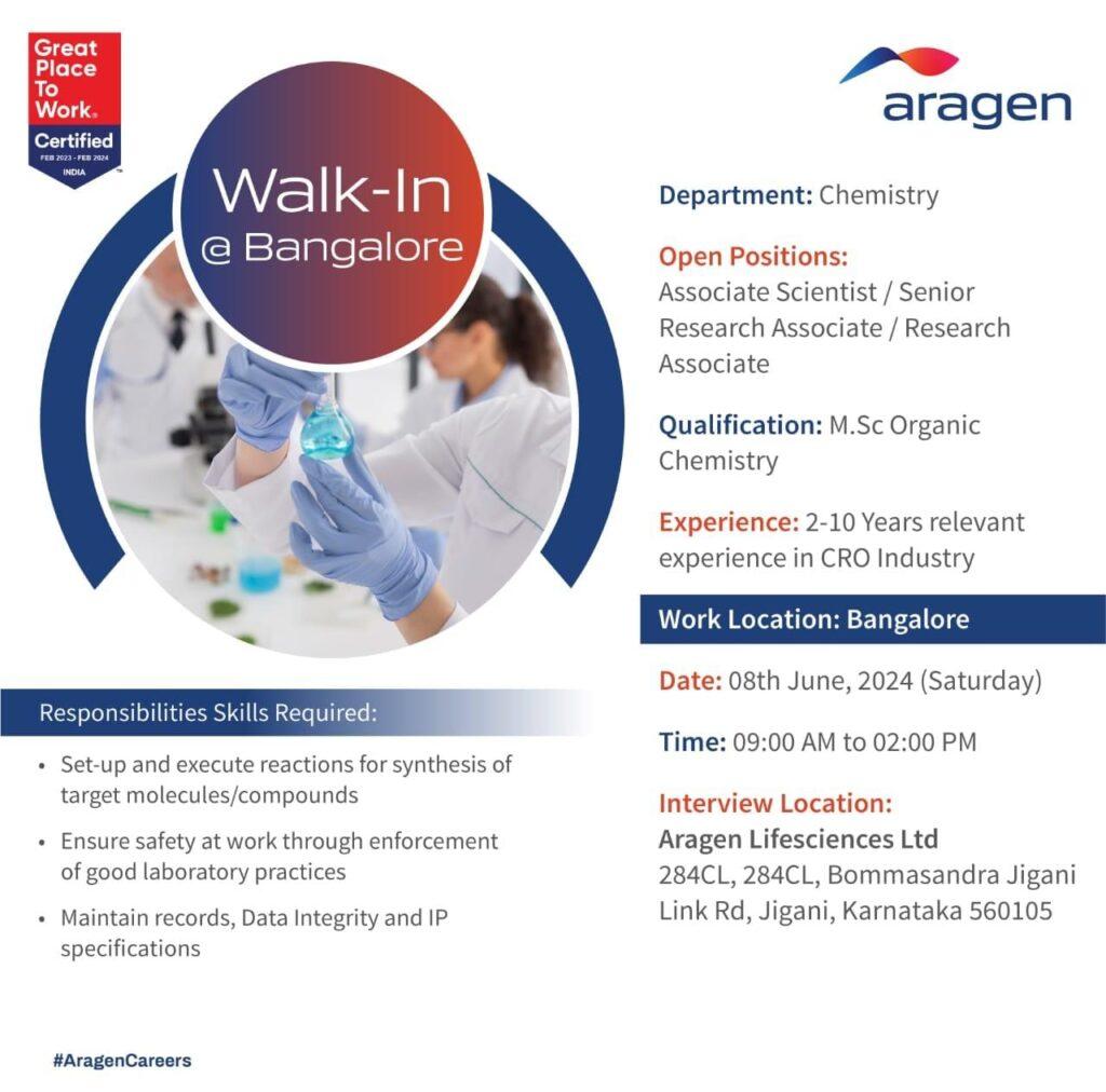 Aragen Lifesciences Walk-In @ Bangalore on 08th June, 2024 (Saturday)
