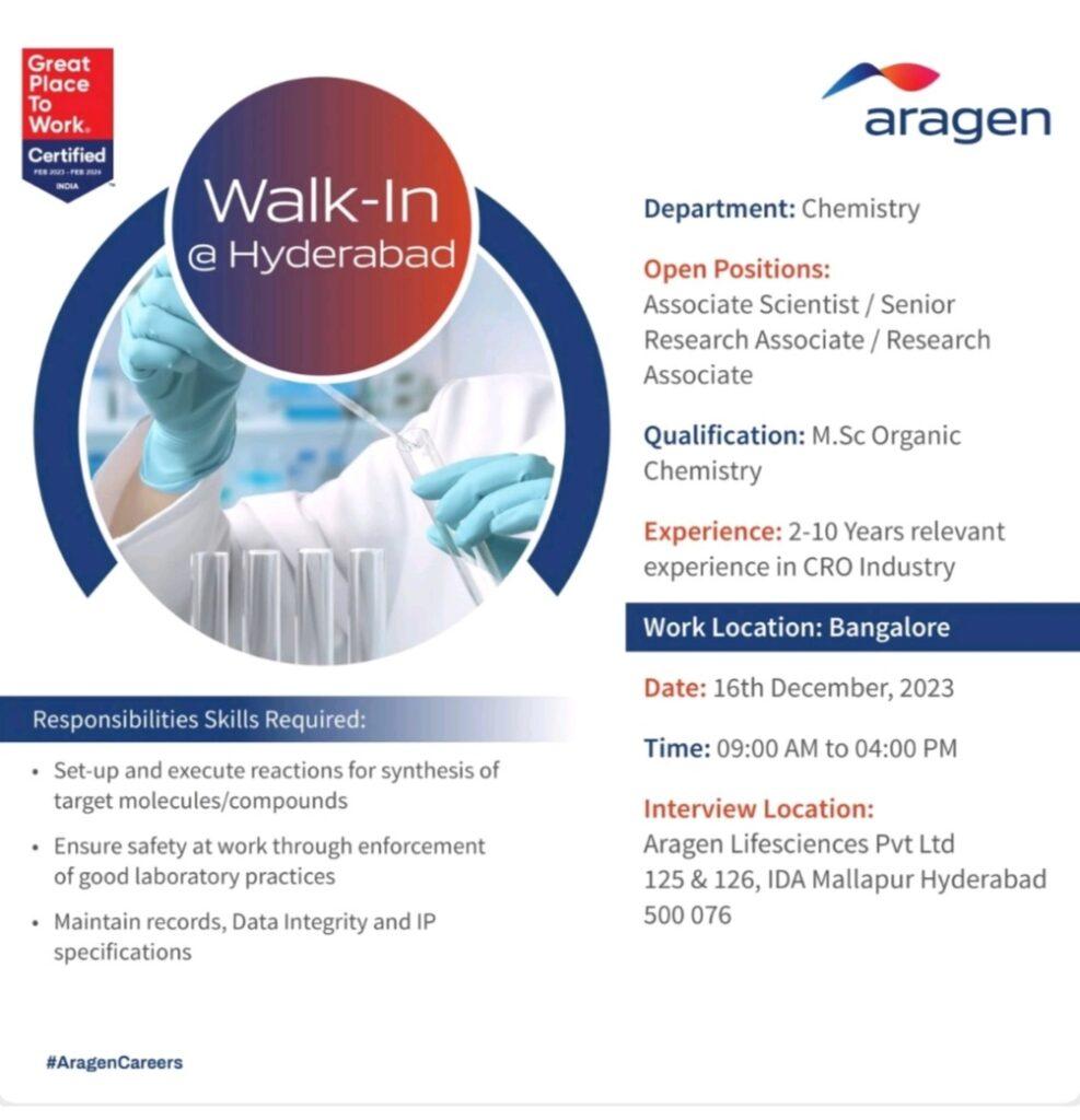 Aragen Lifesciences Walk-In @Hyderabad on 16th December, 2023