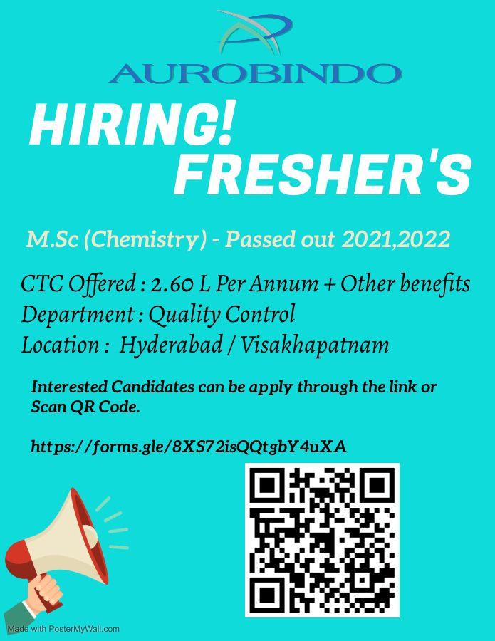 AUROBINDO Hiring M.Sc. Chemistry Freshers for Quality Control department