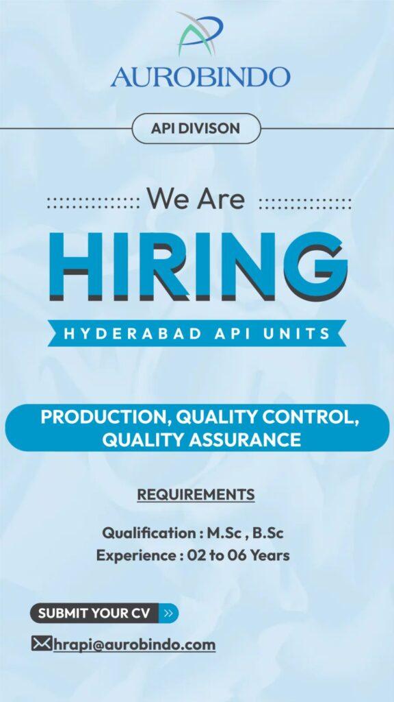 AUROBINDO hiring multiple position for QC,QA & Production department