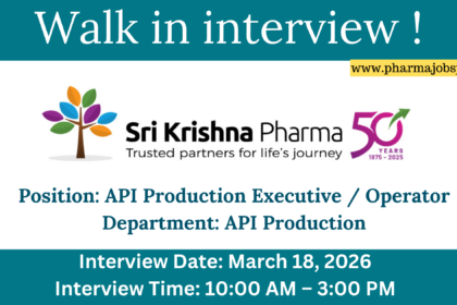 Walk-In Interview for API Production Executive / Operator in Hyderabad – Pharma API Manufacturing Jobs | March 18, 2026