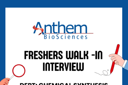 Freshers Walk-In Drive at Anthem Biosciences – Chemical Synthesis Plant Jobs | 19 April