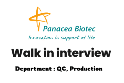Panacea Biotec Walk-In Interview for QC & Production Departments on 29 June 2025