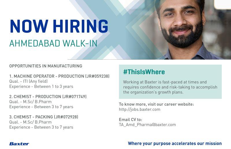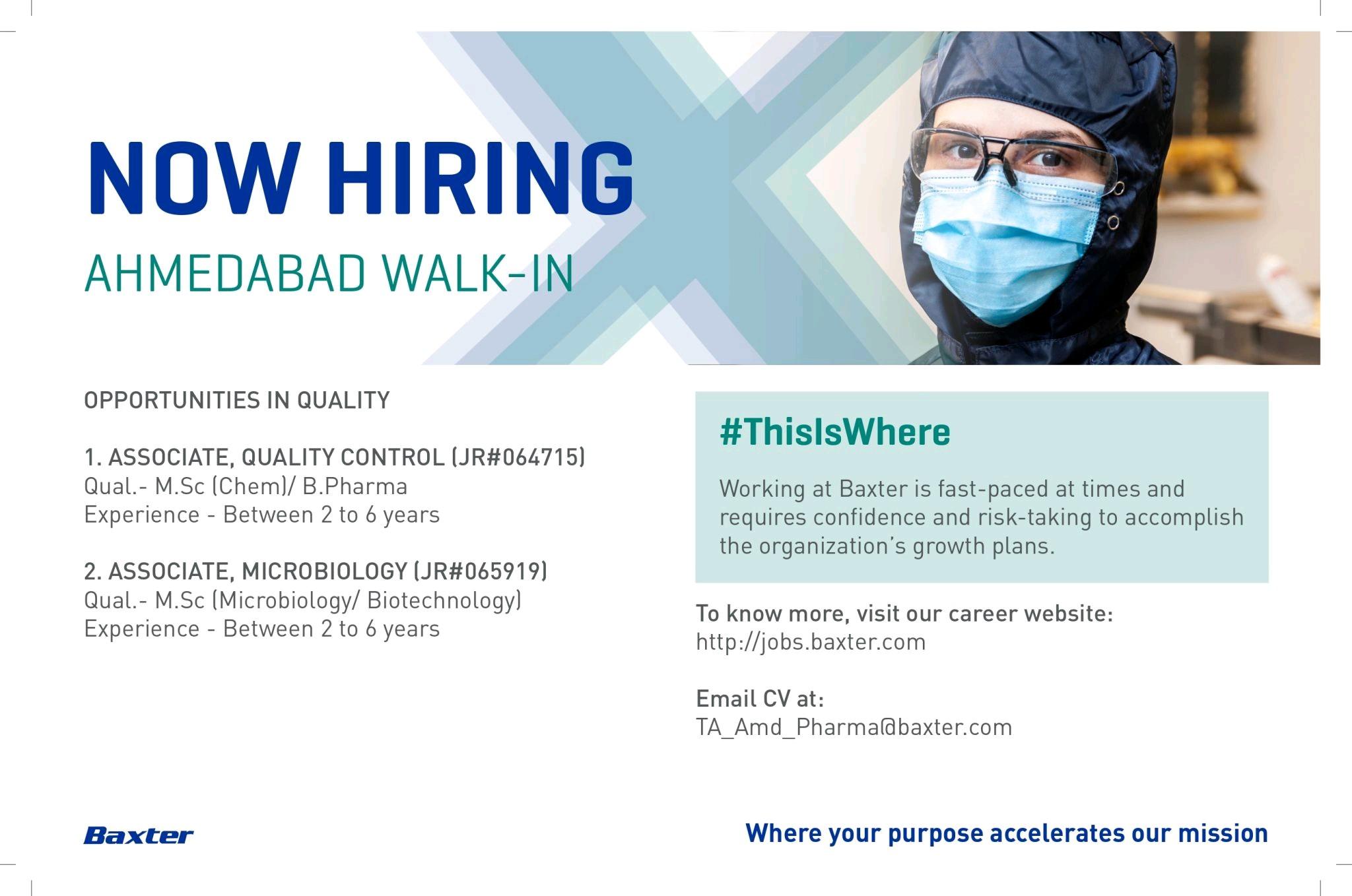 Baxter hiring for QC, Microbiology, Production & Packing department