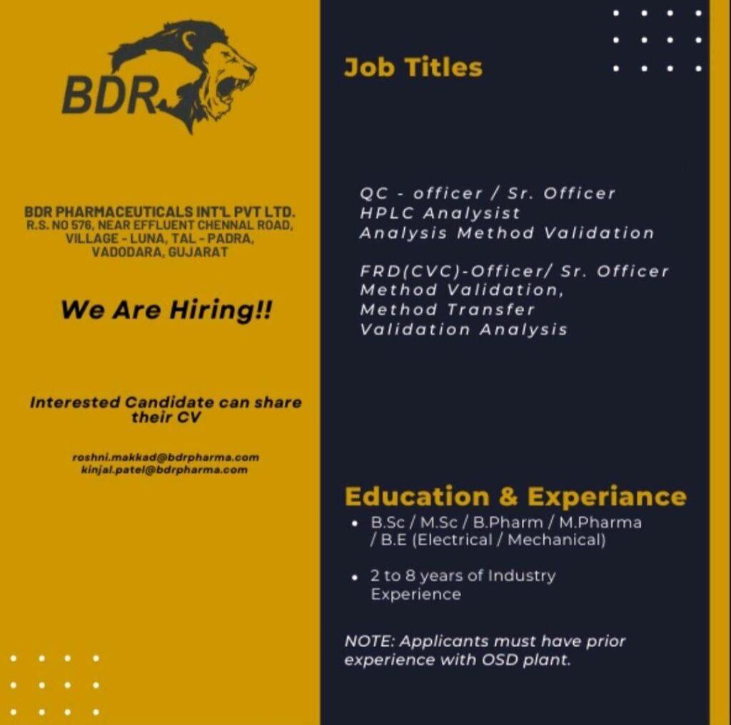 Interested Candidate can share their CV roshni.makkad@bdrpharma.com kinjal patel@bdrpharma.com