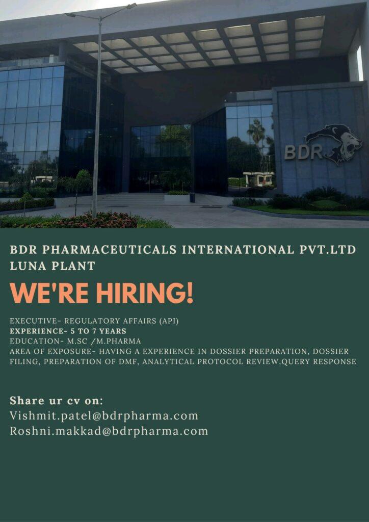 BDR PHARMA- Hiring for Regulatory Affairs (API) department