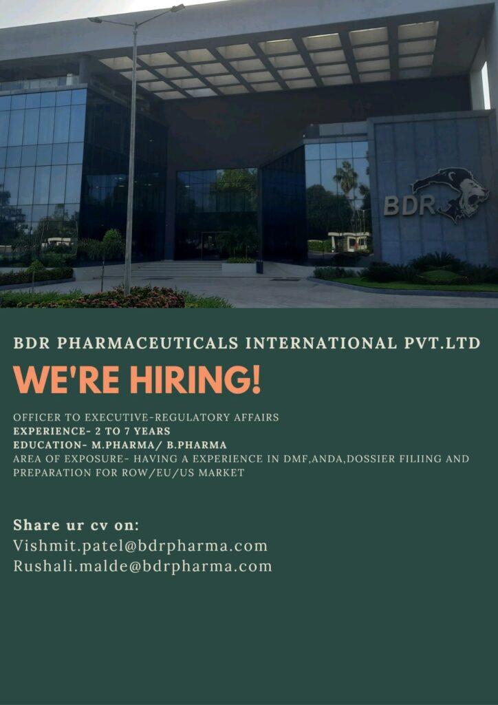 BDR PHARMA hiring for Regulatory Affairs, Production QMS & ADL department