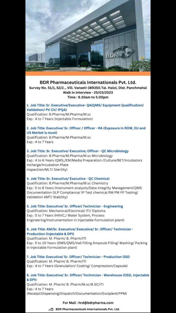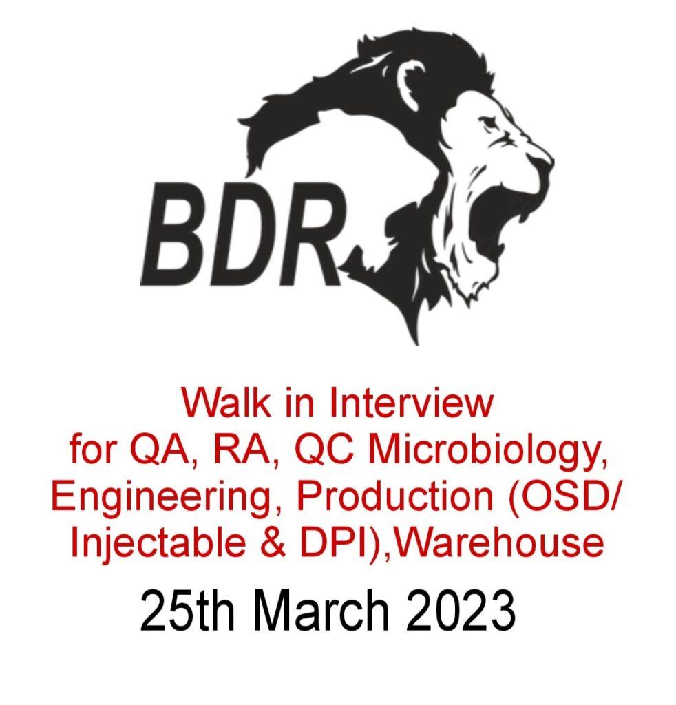 BDR Pharmaceuticals- Walk in Interview for QA, RA, QC Microbiology, Engineering, Production (OSD/ Injectable & DPI), Warehouse on 25th March 2023