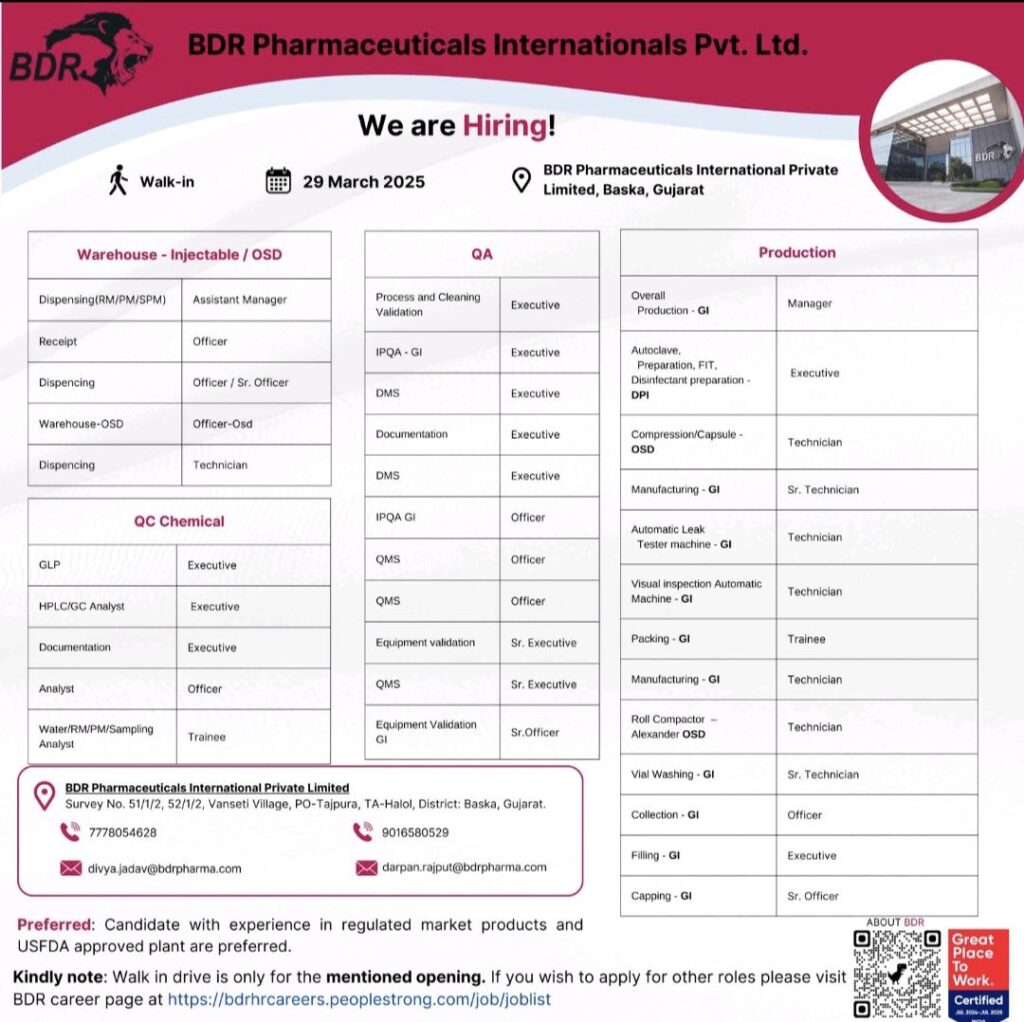 Walk in drive is only for the mentioned opening. If you wish to apply for other roles please visit BDR career page at https://bdrcareers.peoplestrong.com/job/list