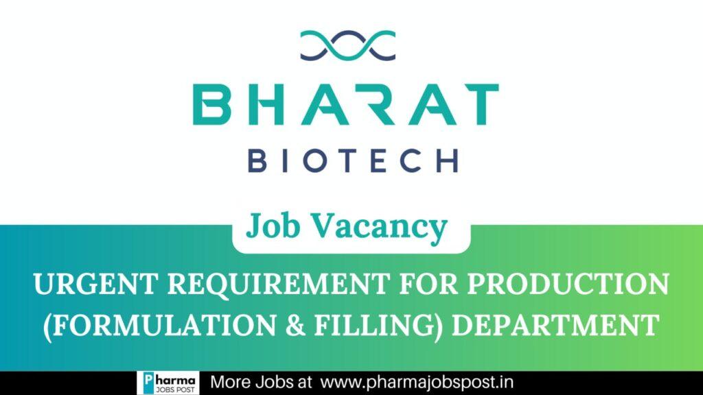 Bharat Biotech – Urgent requirement for Production (Formulation & Filling) department