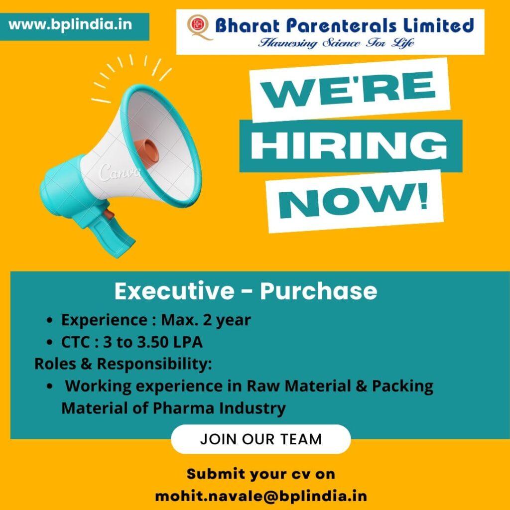 Bharat Parenterals Limited hiring for Executive – Purchase department