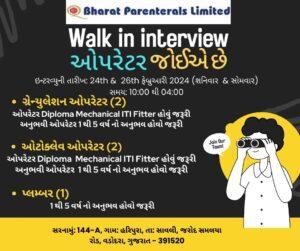 Bharat Parenterals Walk In Interview for QA, QC, Purchase (PM, RM) & Regulatory Affairs on 24th & 26th February 2024