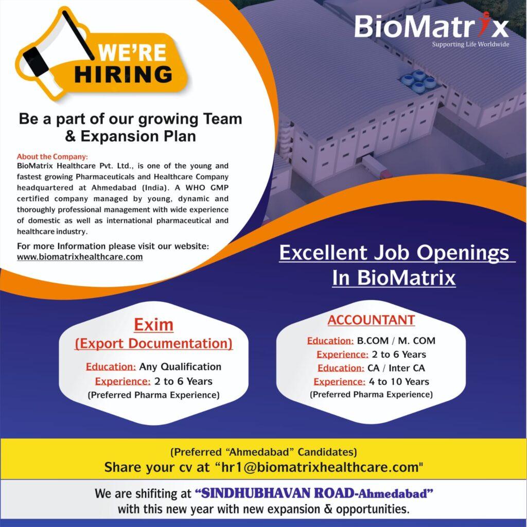 BioMatrix Healthcare- Job Openings for Exim (Export Documentation), Accountant – Apply now