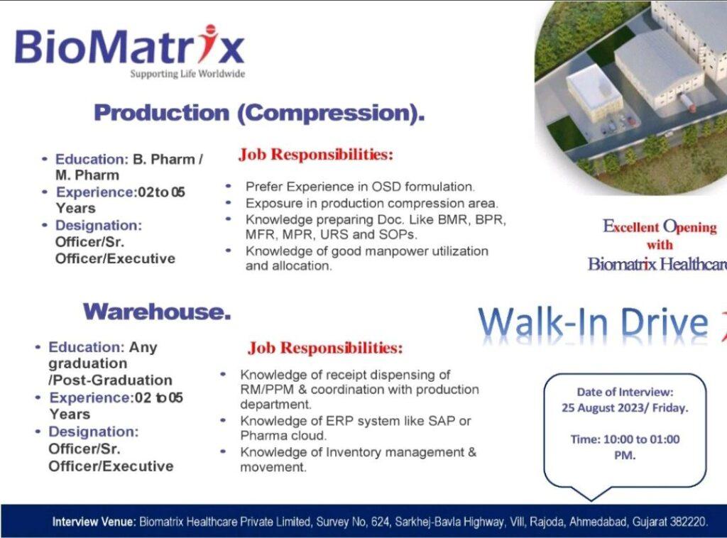 Biomatrix Healthcare Private Limited, Survey No, 624, Sarkhej-Bavla Highway, Vill, Rajoda, Ahmedabad, Gujarat 382220.