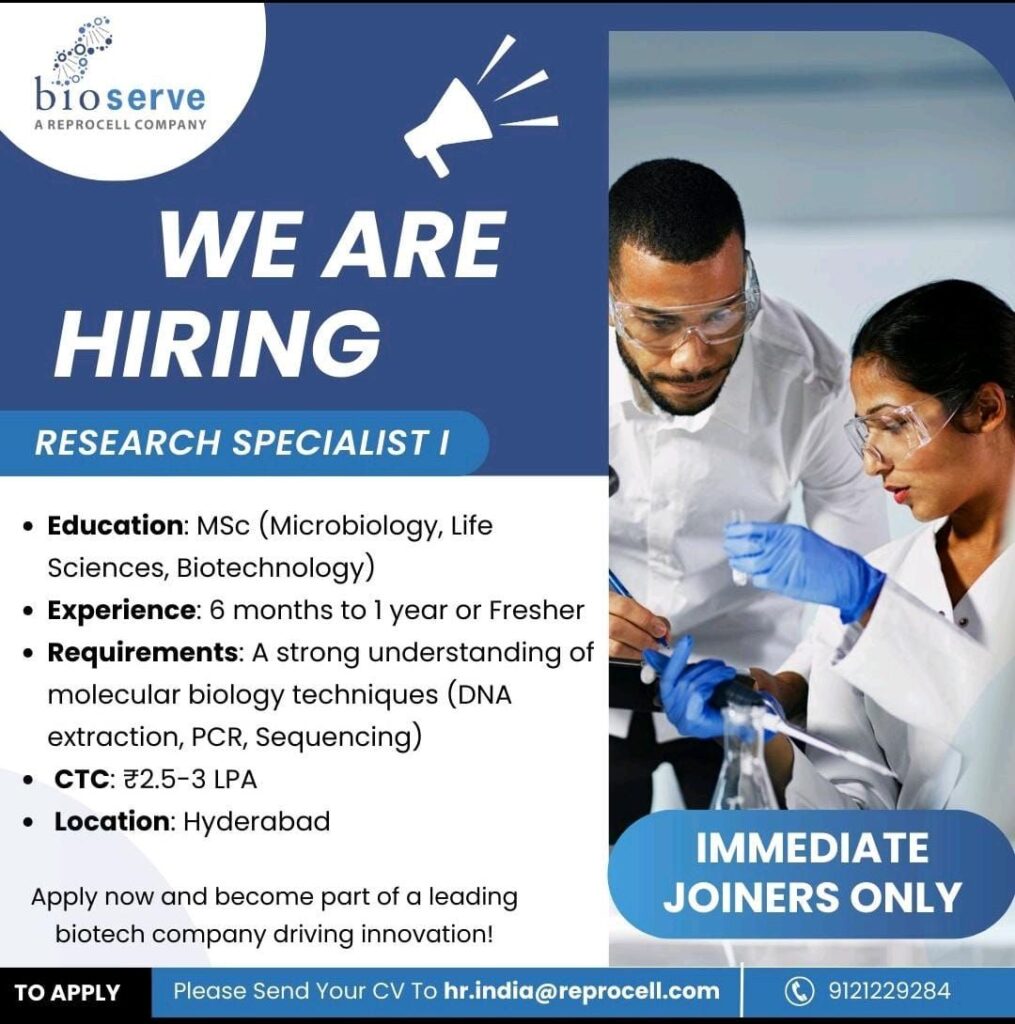 Requirements: A strong understanding of molecular biology techniques (DNA extraction, PCR, Sequencing)
