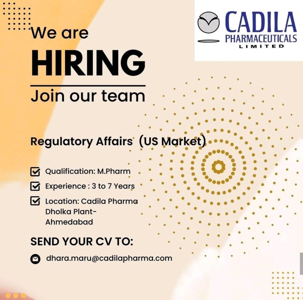 Cadila Pharmaceuticals hiring for Regulatory Affairs (US Market)