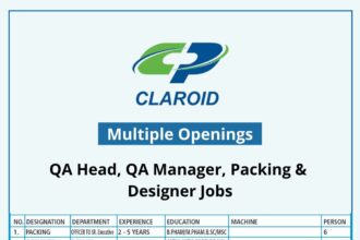 Claroid Pharmaceuticals Ahmedabad Jobs 2025 | QA Head, QA Manager & Packing Openings