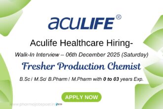 Aculife Healthcare Walk-In Interview – Hiring Fresher Production Chemists | 06 December 2025