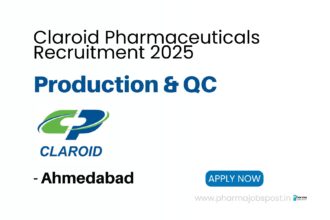 Claroid Pharmaceuticals Recruitment 2025 | Production & QC Jobs in Ahmedabad